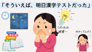 ・そういえば、明日は漢字のテストだった。
