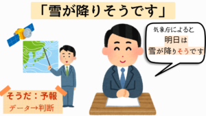 | そうだ(予測) | データなどから判断する | 客観情報 | 弱い | データ→判断 |
