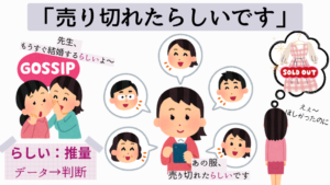 → 間接的な情報(うわさ・話)をもとに判断